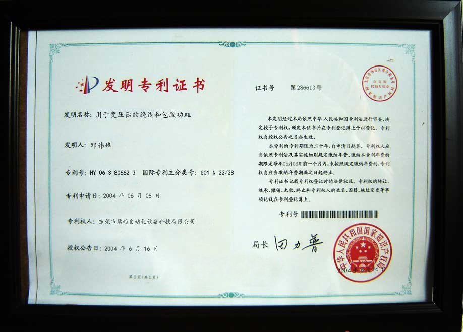 Invention Patent Certificate Name: HY-B01 plastic bag machine